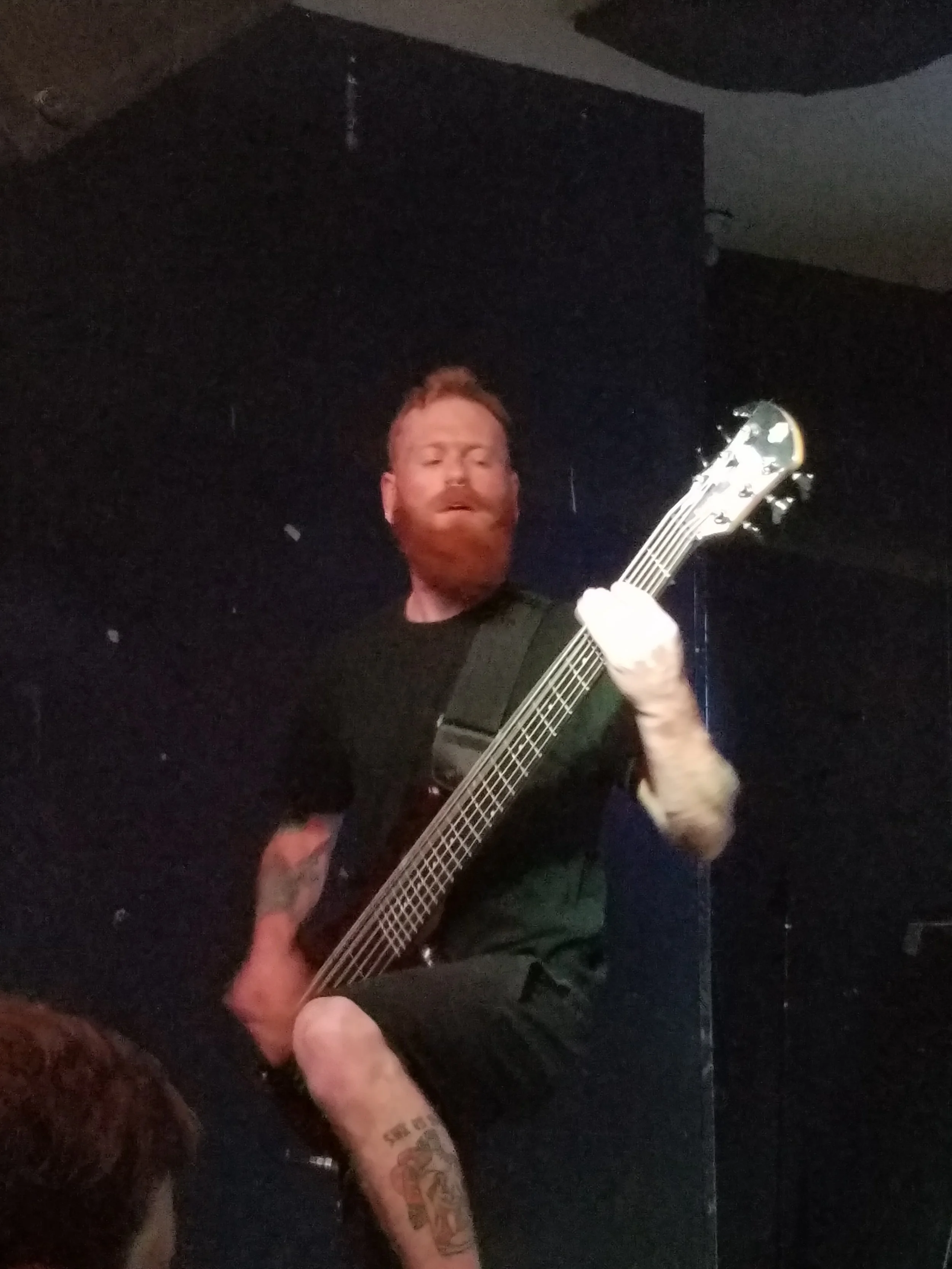 JT: I am using a 6 string Spector bass, that has been customized so I can use a 210-gauge string so I am hitting an octave below Noah’s lowest string. So, it hits hard for a bass.