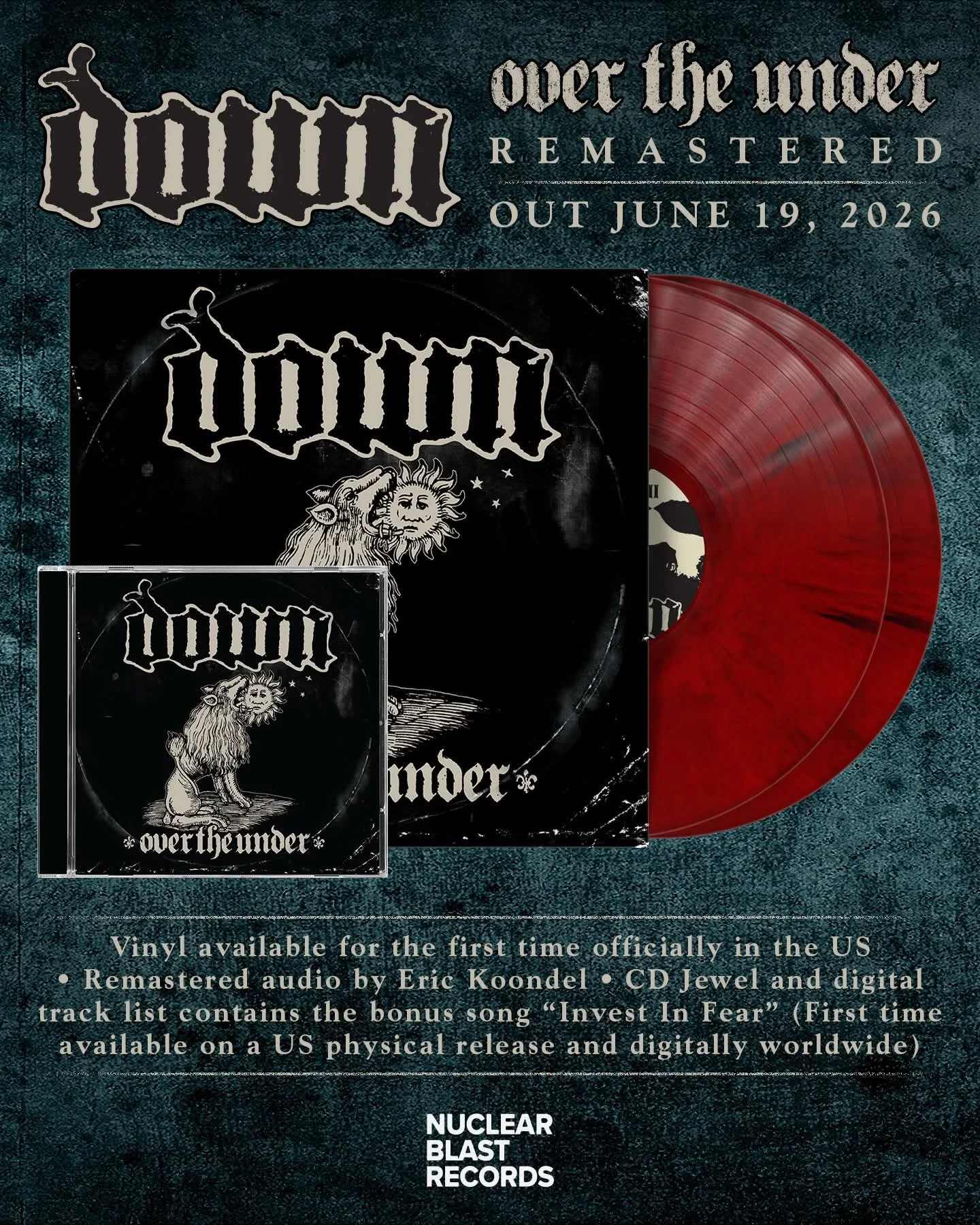 Nuclear Blast will be reissuing Down’s “Over The Under” on vinyl, CD, and digitally. The updated record was remastered by Eric Koondel and it can be pre-ordered HERE. CD and digital copies will feature a bonus track called “Invest In Fear.” For now, a remastered version of “N.O.D.” can be streamed below: