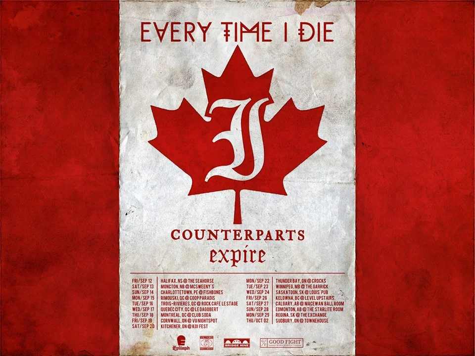 The tour will run from Sep. 12th to Oct. 2nd with support from Counterparts and Expire.