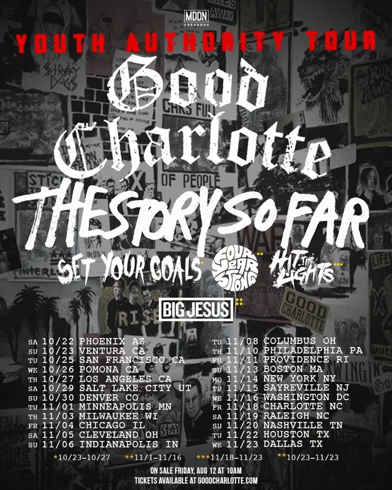 Good Charlotte will be back on the road this Fall with The Story So Far, Set Your Goals, Four Year Strong, Hit The Lights +Big Jesus! Tickets go on sale this FRI 8/12 at 10am local time at goodcharlotte.com.