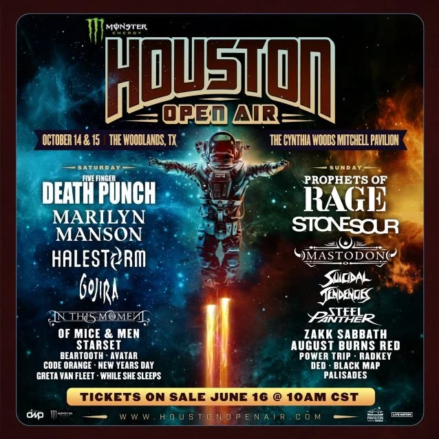 October 15: Prophets Of Rage, Stone Sour, Mastodon, Suicidal Tendencies, Steel Panther, Zakk Sabbath, August Burns Red, Power Trip, Radkey, Ded, Palisades, and Black Map.