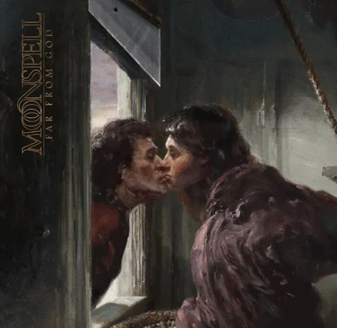 “To create ‘Far From God’, we had to wait for the muse. Again, she didn’t fail us and revealed herself in the most mysterious and beautiful ways to us. It took us five long years of hit and miss, of despairing to the point of thinking we didn’t have it anymore, and why should we at all create new music? But I’m glad we persisted. ‘Far From God’ is a true crusade against the decline of the style in the past few years, a darkly crafted statement that Moonspell is here to stay and to claim our throne. No politics, no socials, no intervention, just sickly romantic love, vampires, werewolves so we can all die of beauty, in peace and elegance. Goth bless you.”