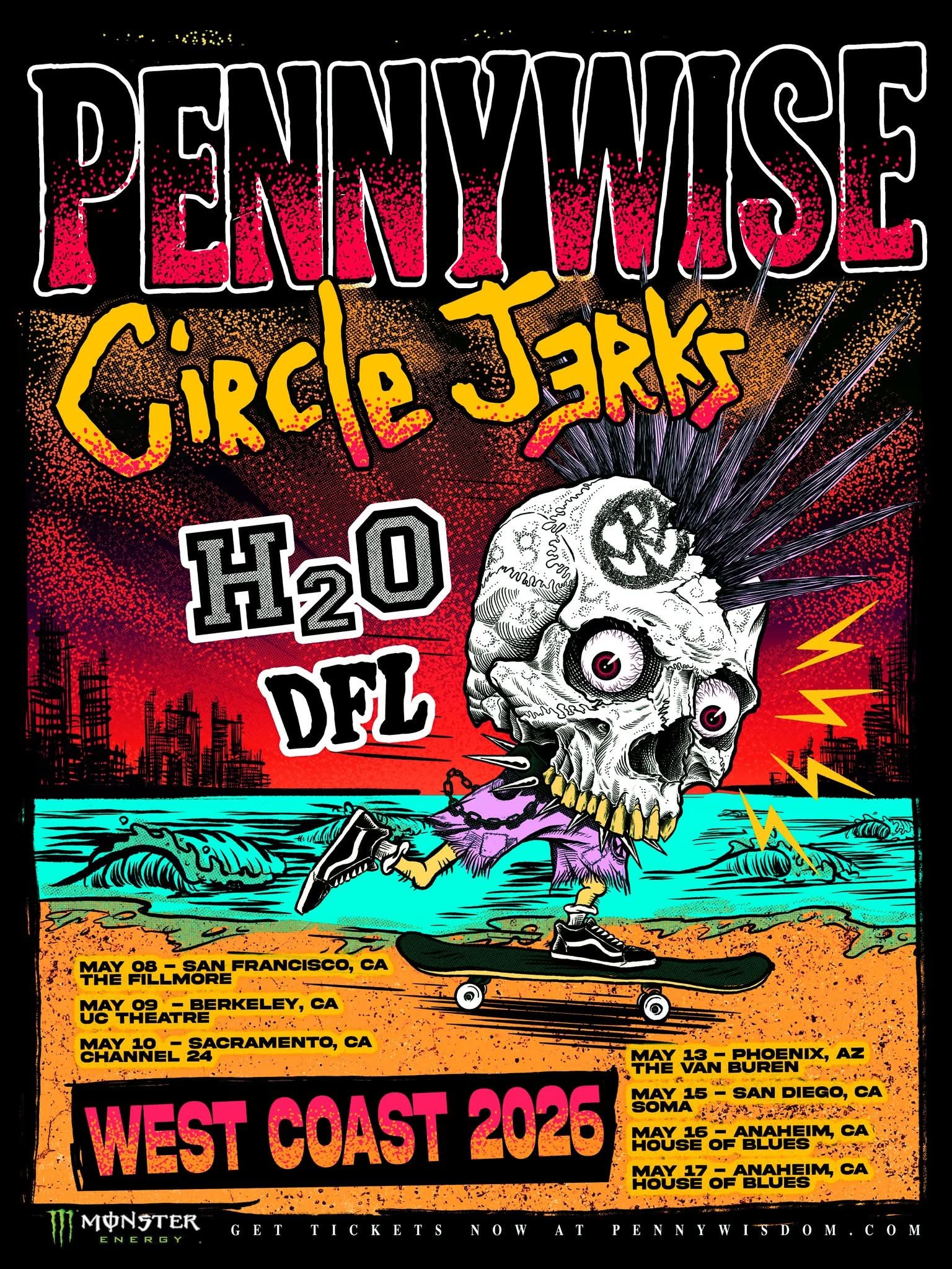 Pennywise have announced a headlining West Coast tour. Circle Jerks, H2O, and DFL will open. Here's where you can catch them: