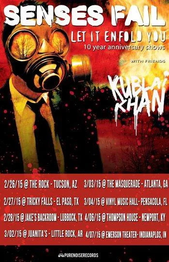 Senses Fail will be doing a few headline dates out and back from the Bayside tour. Kublai Khan will be support from 2/26 - 3/4. They'll be playing Let It Enfold You plus other favorites at these shows.