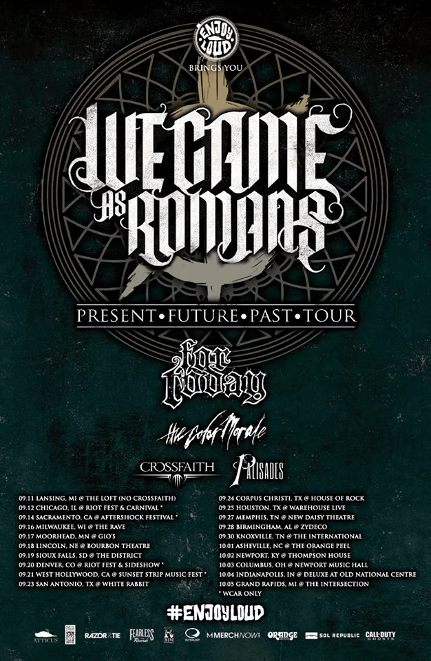 For Today announces Fall tour with headliner We Came As Romans and other supporting acts The Color Morale, Crossfaith and Palisades. The tour kicks off September 11th in Lansing, MI. The band is currently finishing up a main stage run on the 2014 Van’s Warped Tour.