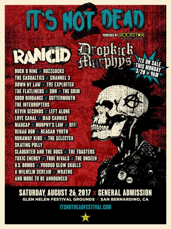 Rancid and Dropkick Murphys are set to headline the 2017 It’s Not Dead Festival. The event will take place on August 26, at the Glen Helen Festival Grounds, in San Bernardino, CA, and the the list of confirmed bands can be found below: