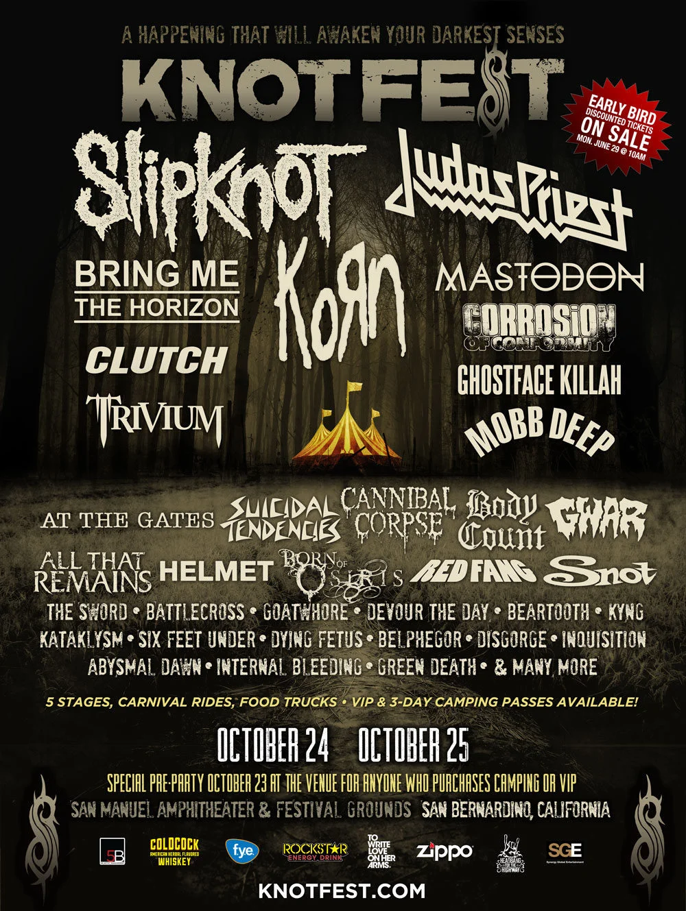 Knotfest returns to San Bernardino, CA this fall, with an unprecedented lineup of metal and heavy music titans, spread out over three nights. Get your tickets at knotfest.com