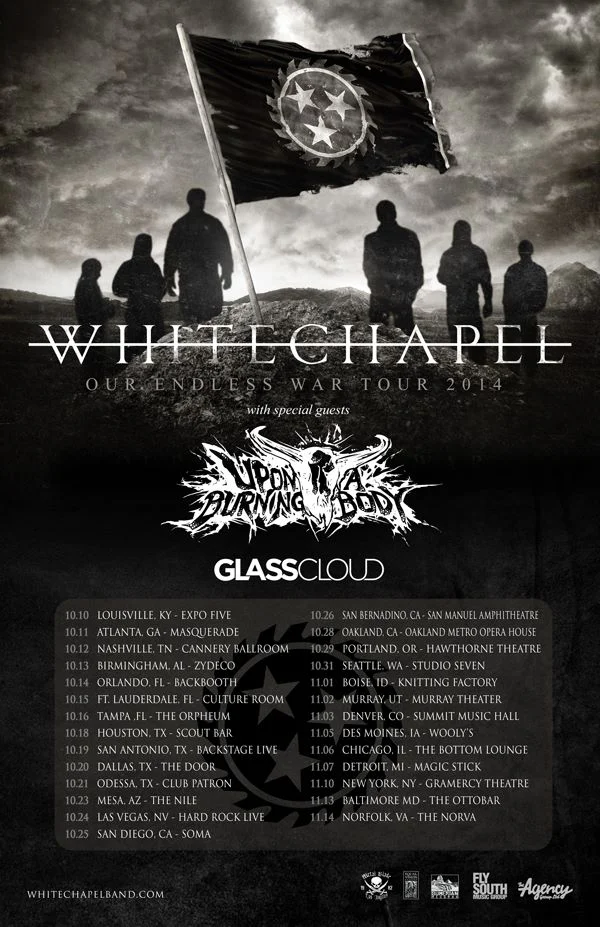 Whitechapel have announced their "Our Endless War Tour" this fall featuring special guests Upon A Burning Body and Glass Cloud, tickets and more information available soon at http://www.whitechapelband.com/!