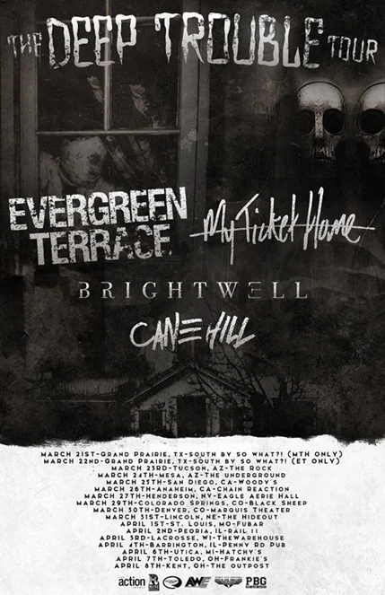 Evergreen Terrace and My Ticket Home will be co-headlining The Deep Trouble Tour this Spring. Support comes from Brightwell and Cane Hill. Was I the only one who thought of a certain scene from The Running Man when they announced the name of the tour?