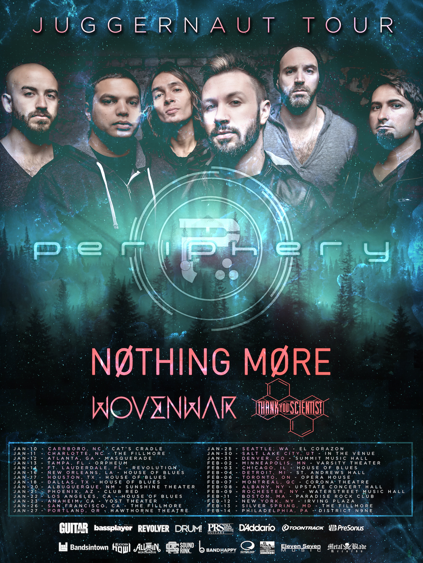 Periphery have announced they'll release dual albums titled, Juggernaut: Alpha and Juggernaut: Omega, on Jan. 27th. The band will hit the road in support of the records with Nothing More, Wovenwar and Thank You Scientist. Dates are below.