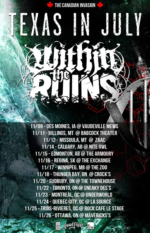 Texas In July will head north this fall for a co-headline tour with Within The Ruins. Touring in support of their newly released record Bloodwork, Texas In July and company will kick off their run of dates with a warm up show in Des Moines followed by a string of shows from Calgary to Ottawa with additional dates to be announced soon.