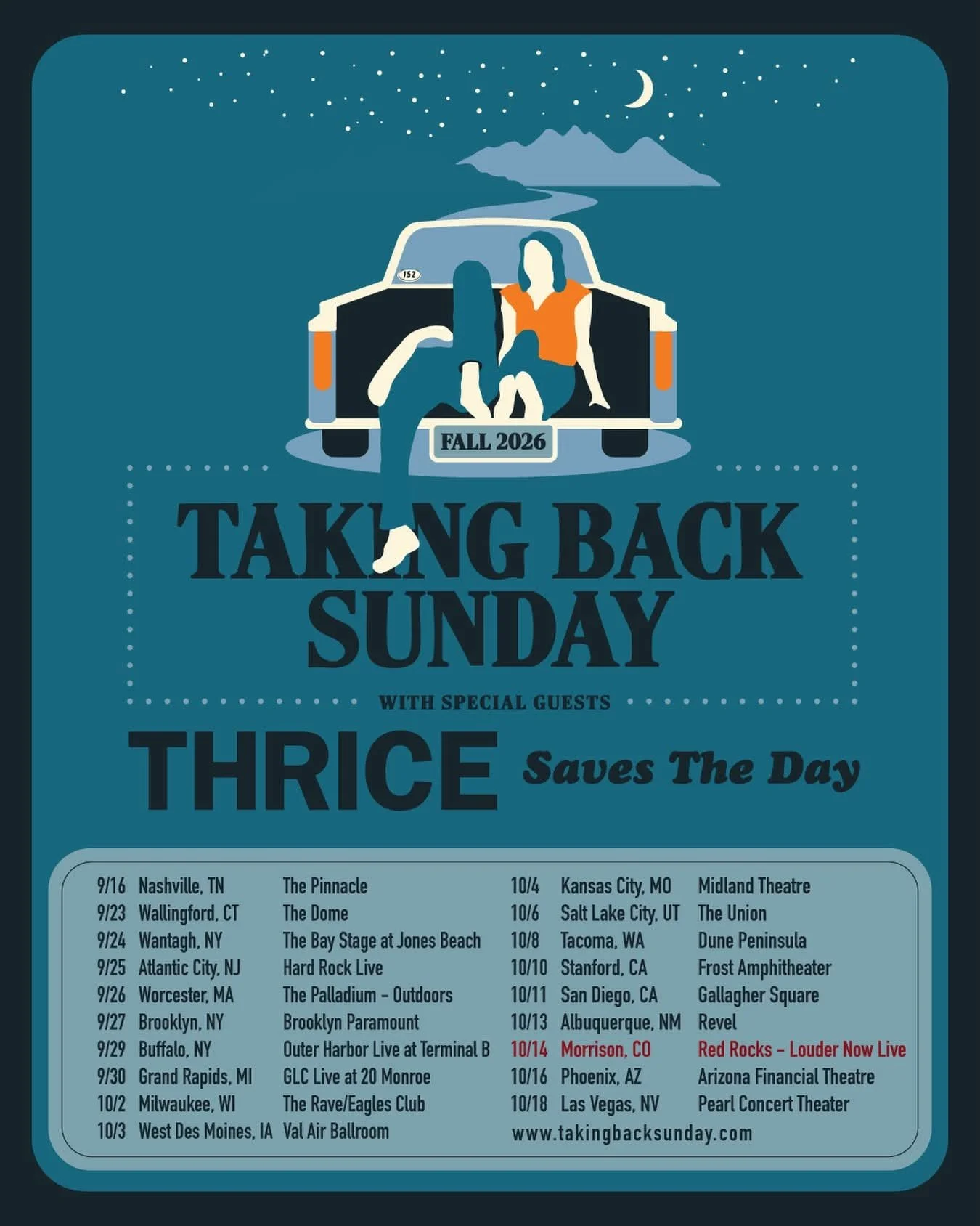 10/14 Morrison, CO – Red Rocks Amphitheatre (“Louder Now” 20th anniversary set)