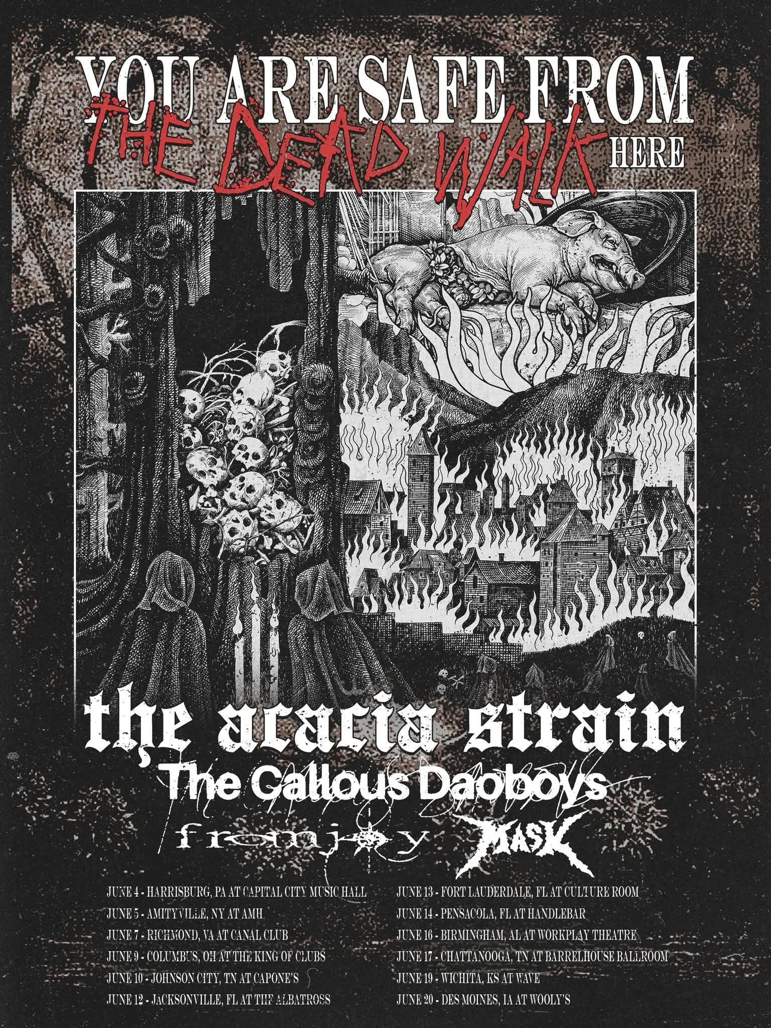 The Acacia Strain have announced a summer tour with The Callous Daoboys, Fromjoy, and Mask. The trek will find the group focusing on material from “You Are Safe From God Here” and “The Dead Walk.” Here's the dates: