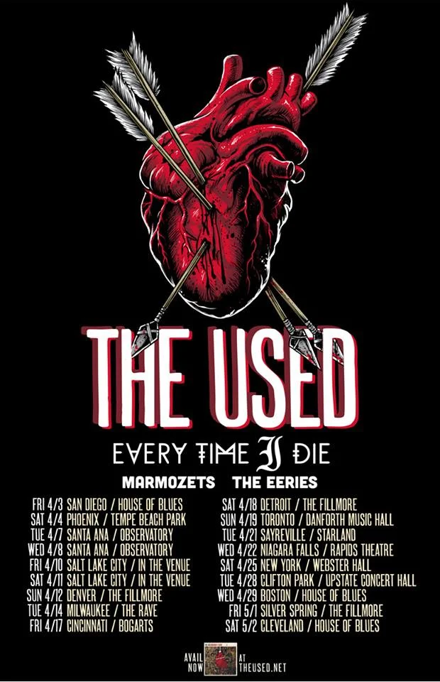 The Used will be going on tour in a couple months, as seen below. Tickets are avaliable here, on their website.